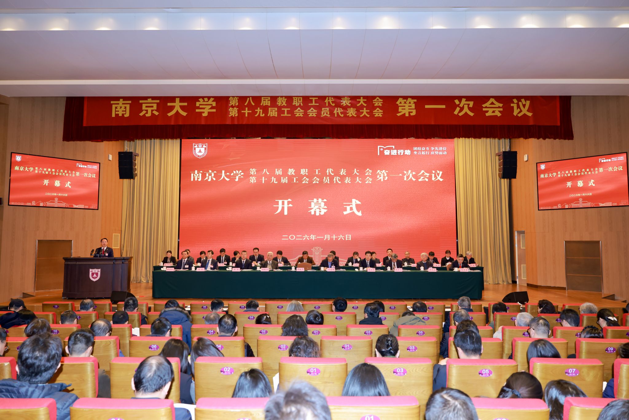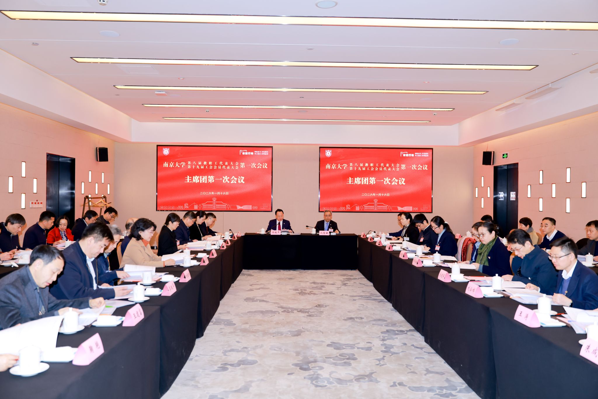 1月16日,南京大学第八届教职工代表大会、第十九届工会会员代表大会第一次会议正式开幕。校党委书记、中国科学院院士谭铁牛,校长、中国科学院院士谈哲敏出席会议。