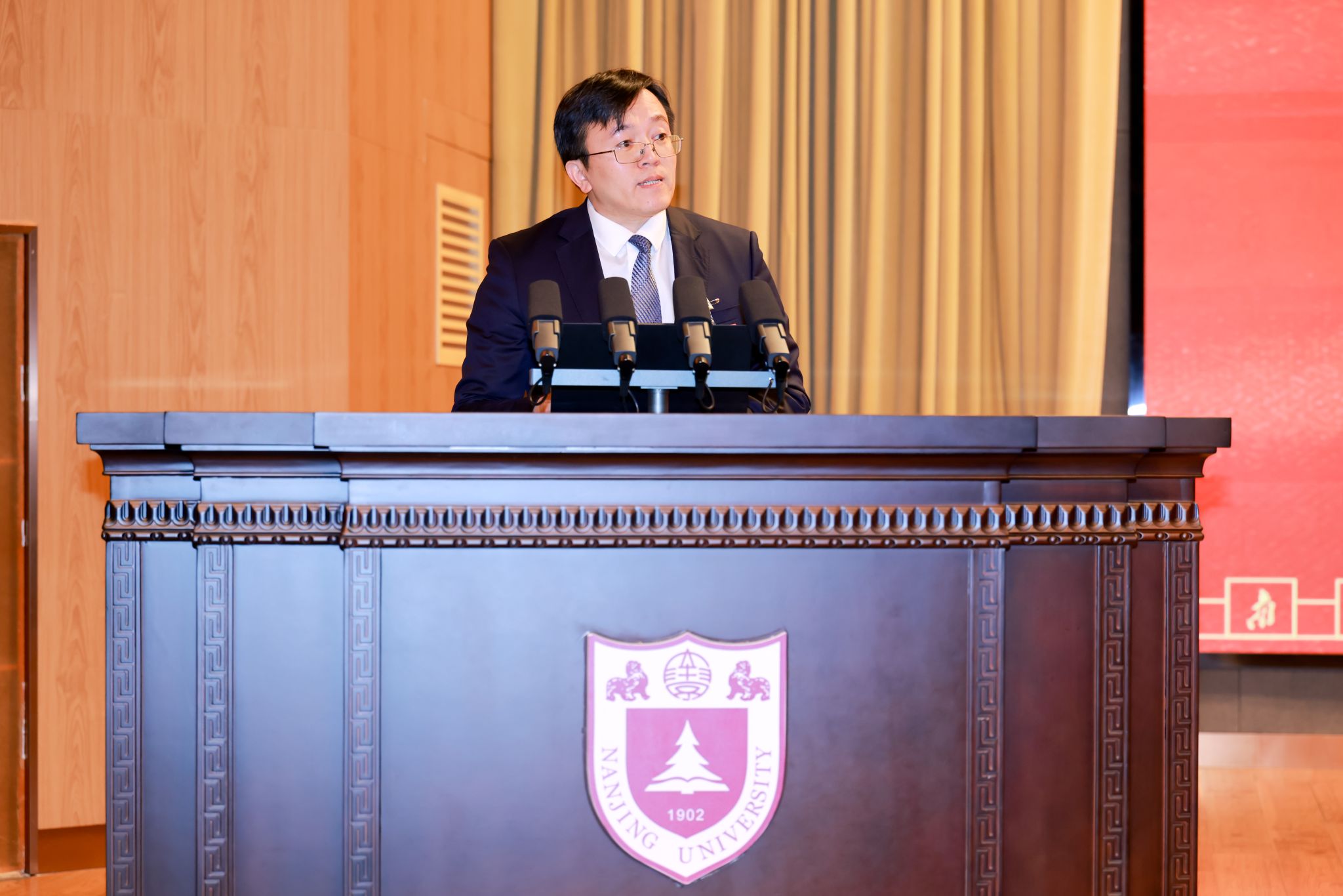 江苏省委教育工委副书记(正厅级)许峰指出,南京大学始终坚持扎根江苏、服务全国、面向世界,为江苏经济社会发展、为强国建设和民族复兴伟业作出了重大贡献。江苏省委省政府始终高度重视、全力支持南京大学的建设与发展,将南大视为江苏高等教育的排头兵、科技创新的策源地。过去五年,全体南大人坚守为党育人、为国育才的初心使命,聚焦立德树人根本任务,锐意改革创新,奋力攻坚克难,推动各项事业迈上了新台阶,实现了新跨越。许峰表示,希望南京大学在筑牢育人根本上达到新高度,在服务发展融合上实现新突破,在完善治理体系上激发新活力。江苏省教育厅将继续在政策引导、资源对接、环境营造等方面予以全力支持,积极推动部省共建走深走实,为学校心无旁骛攀高峰,扎根江苏作贡献创造最有利的条件。